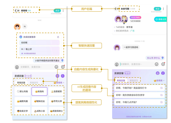 在聊天场景下,AI大模型还可以对聊天回复进行多种风格的选择,比如高情商、温柔暖男、幽默风趣等。