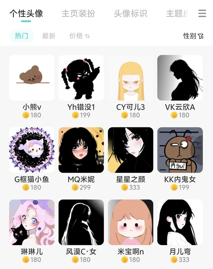 从这里开始,所有的虚拟物品都已标好了价格。