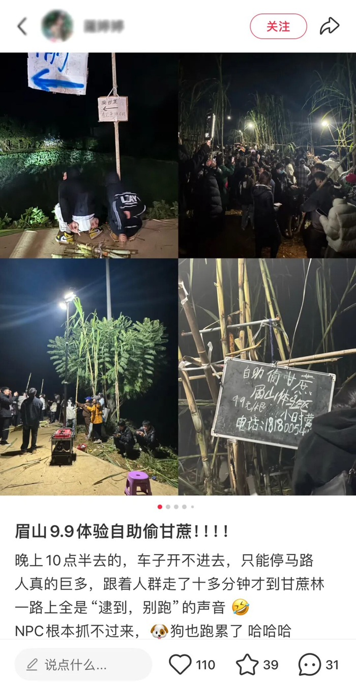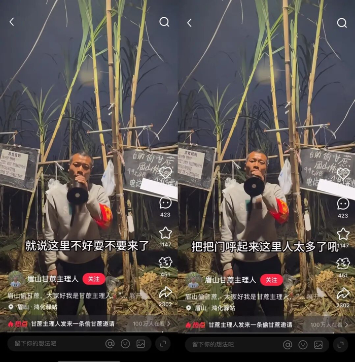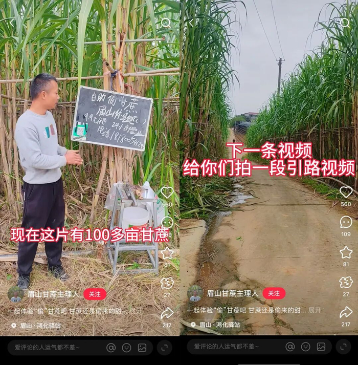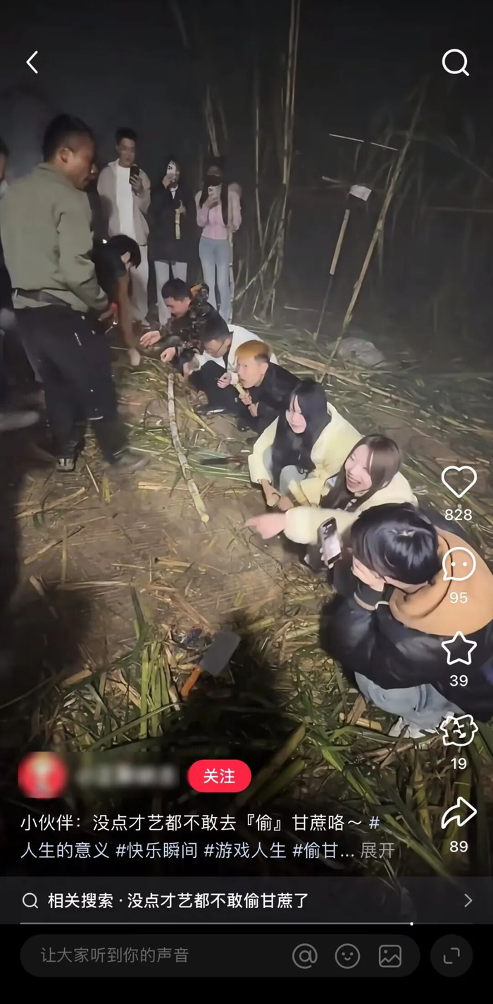 虽然是博主随手拍的视频,可现在“偷甘蔗”游戏并非传统意义上的采摘活动,也不是简单的一买一卖,而是一场融合角色扮演、情境营造与即时互动的沉浸式游戏。