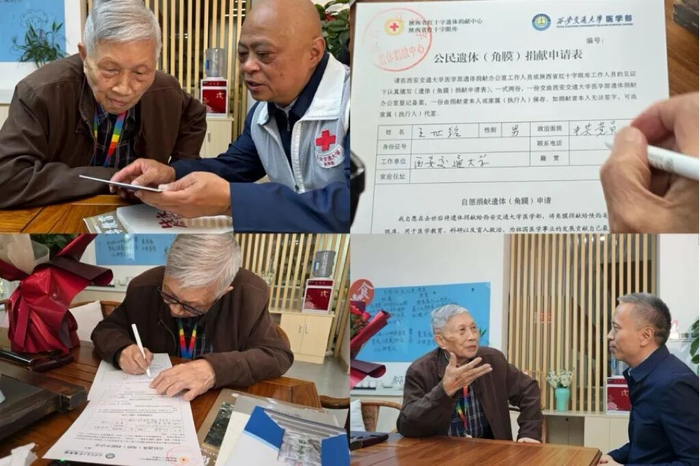 2024年10月10日,王世绍同志在生命的暮年与老伴约定,身后将遗体捐献给西安交通大学医学部,他郑重签下《公民遗体(角膜)捐献申请表》。